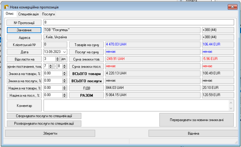 Комерційна пропозиція, як правило складається з переліку товарів, знижок замовнику та переліку послуг, за необхідності.