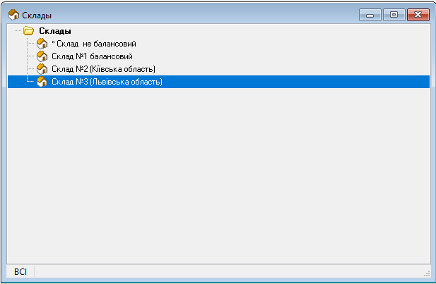 В програмі є можливість підтримувати необмежену кількість складів, як балансових так і допоміжних. Для цього у довіднику складів треба задати необхідну кількість складів та вибрати основний склад за замовчуванням для прибуткових накладних.